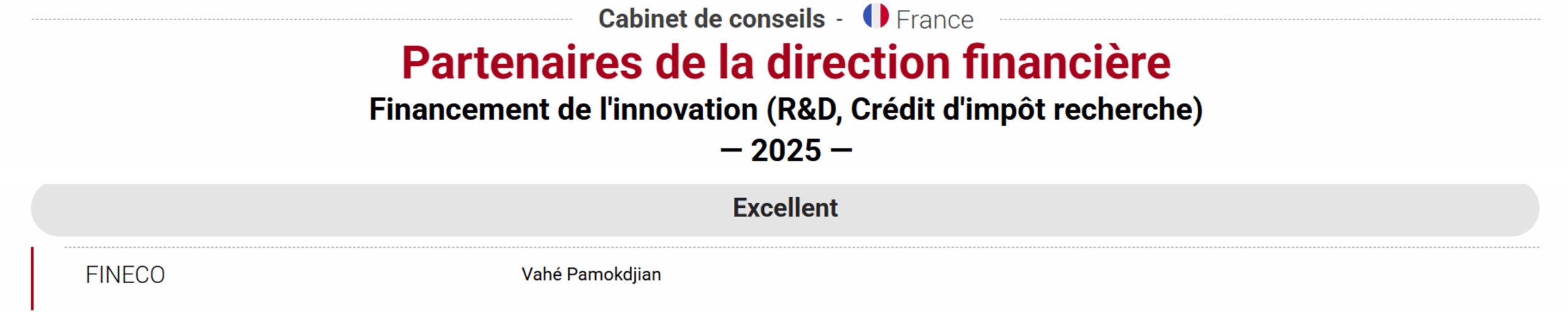 Cette année encore, notre société est à l’honneur dans le classement 2025 des meilleurs Cabinets de conseils en France, dans la catégorie “Financement de l’innovation”.